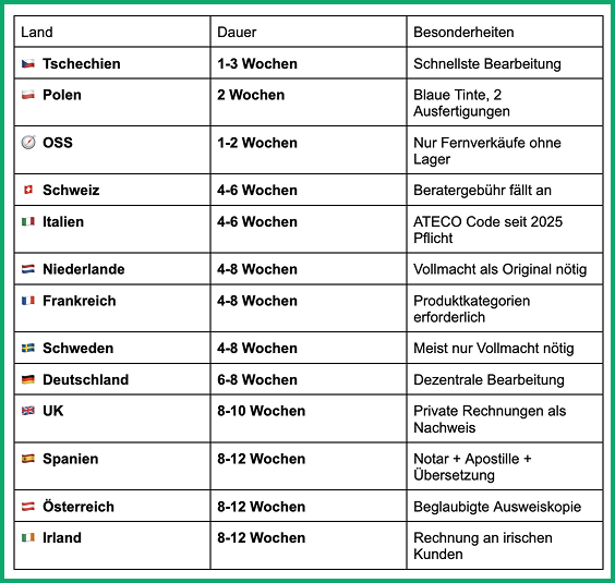 2) Wie schnell bekomme ich eine USt-ID in Tschechien?